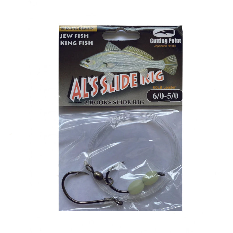 Great value adjustable size bait rig. Ideal for large squid, fillet and cut baits and whole live baits Complete with easy to follow instructions on the back. Super smooth hook-ups that withstand the strongest runs from the toughest of fish. Great for when you are chasing Jew, Snapper and Kingies.