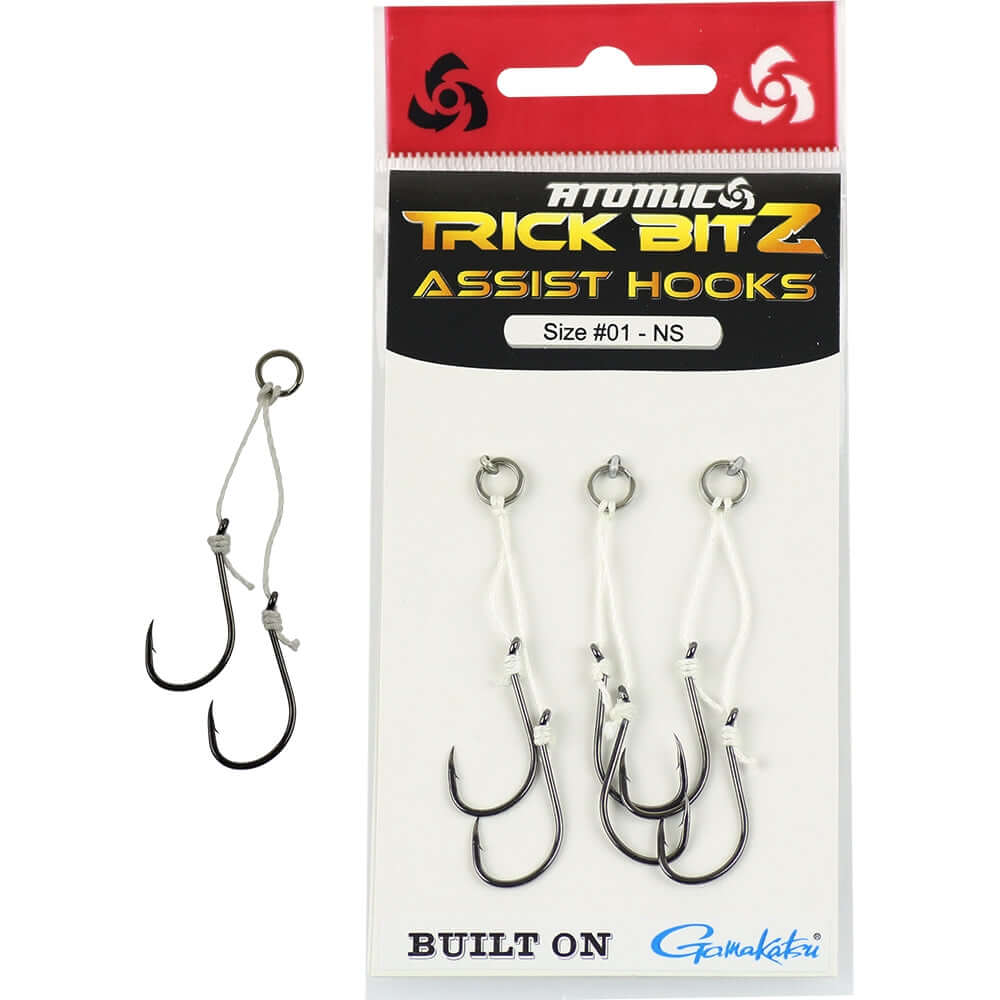 Trick BitZ Assist Hooks from the great Atomic brand are perfectly suited as a stinger hook off the back of your preferred lure. With a Gamakatsu Octopus Hook, very strong Kevlar cord and Gamakatsu Split Ring, these are a smart choice for your next fishing trip.