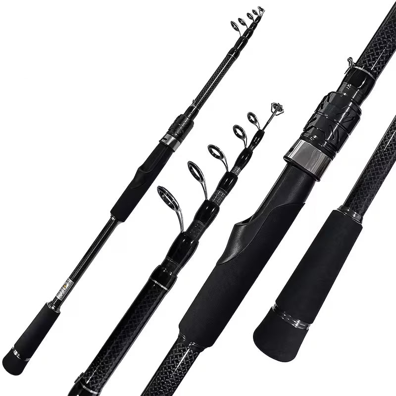 The Bakawa Telescopic Spin Rod are a versatile fishing rod with five sections, made of carbon fiber for spinning, featuring an EVA handle and ABS reel holder, suitable for all types of land based, boat and travel fishing.