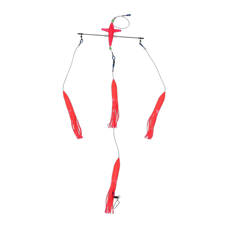 The Black Pete Spreader Bar is an elite surface teaser engineered to trigger aggressive feeding responses in yellowfin and southern bluefin tuna. This tactical rig features precision-designed wave-walking 'birds' paired with 9" foam filled squid, effectively simulating a disorganized bait school under attack. The calculated disturbance pattern proves consistently effective at drawing curious tuna and marlin into striking range, maximizing your offshore opportunities.