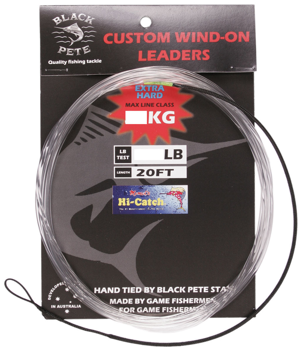 Wind On fishing Leaders custom made by Aussie game fishing tackle manufacturer Black Pete Marine. Choose from 80-400lb to suit all your game fishing needs. Length 6.1m (20'). N.B. DACRON COLOUR MAY VARY.