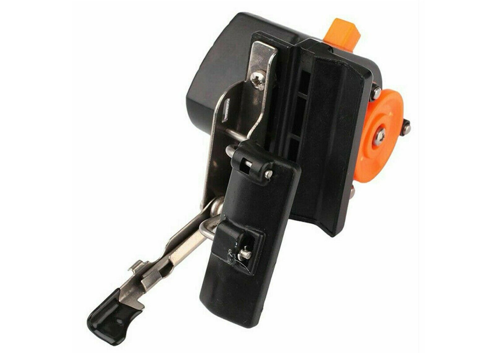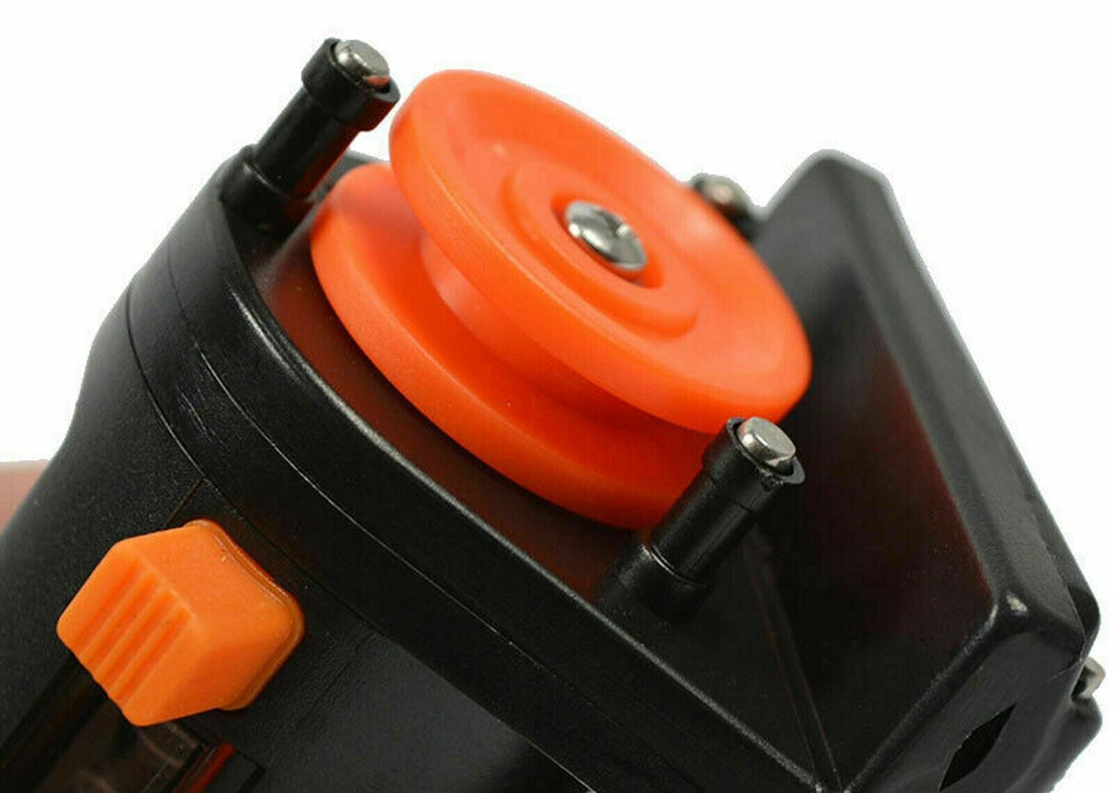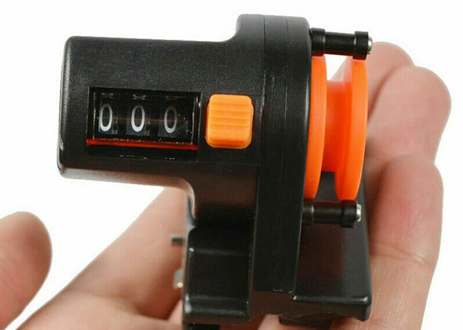 The line counter measures in meters and is easily reset by the push of a button. Simply just clip the line counter onto your rod or downrigger and feed the line around the wheel.