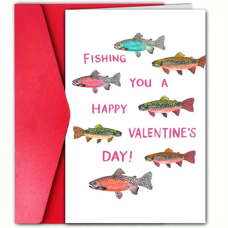 This fishing valentines day card is the perfect way to celebrate a love for fishing. Featuring a unique and fun design, this card is sure to make any angler's valentines day special. Show your appreciation for their favourite pastime with this one-of-a-kind valentines day card.