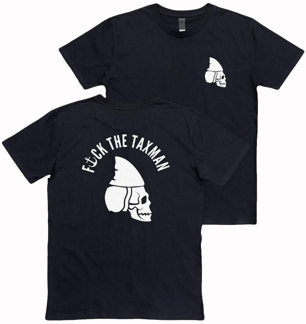 This FTTM Skully F*#K The Taxman double-sided T-Shirt boasts a small chest print of a skull logo and a large back print featuring the skull & F*#k The Taxman logo. Crafted from 100% combed cotton jersey knit, this 185 GSM combed cotton crew neck t-shirt ensures a stylish and comfortable fit, while the high quality front and back print ensures you'll never forget to F*#k The Taxman.