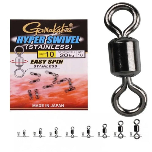 This swivel is made of stainless steel and is super strong for its size, its easy spin design makes it a must for fisherman. All packs are weight rated for easy matching to any form of fishing.