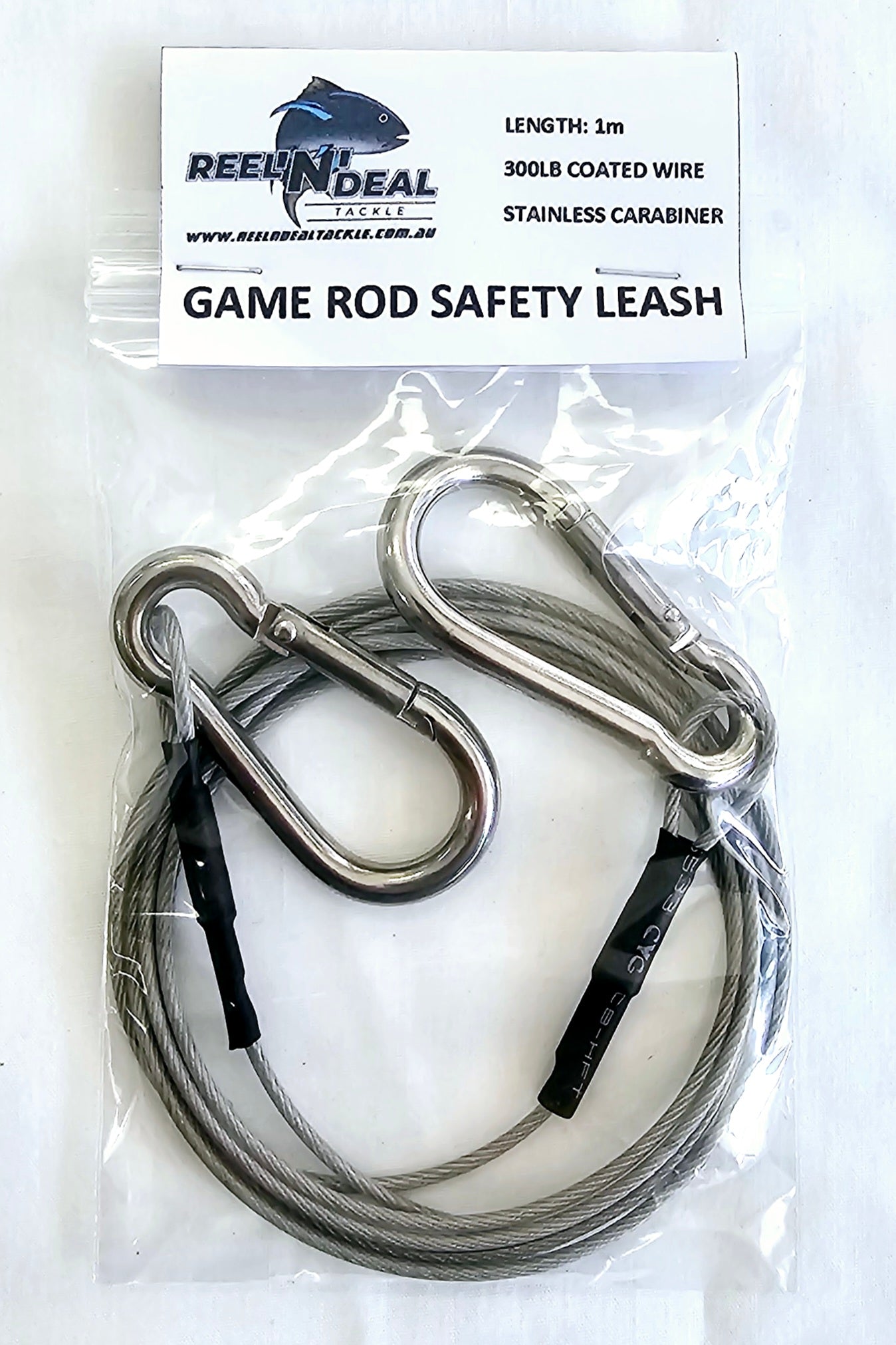 This 1-meter rod leash features a black-coated stainless steel wire rope rated at 300lb, paired with two heavy-duty 316 stainless steel carabiner snaps. Designed for durability, it’s ideal for securing big game fishing rods, burley buckets, and similar equipment.