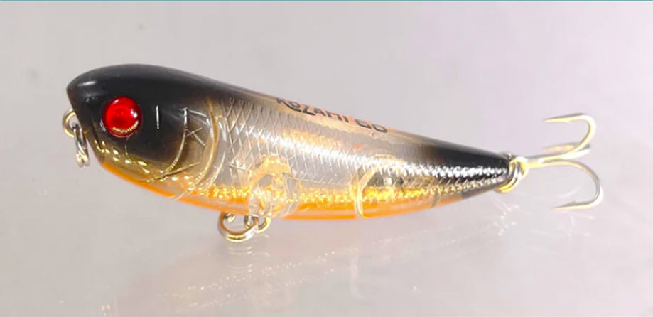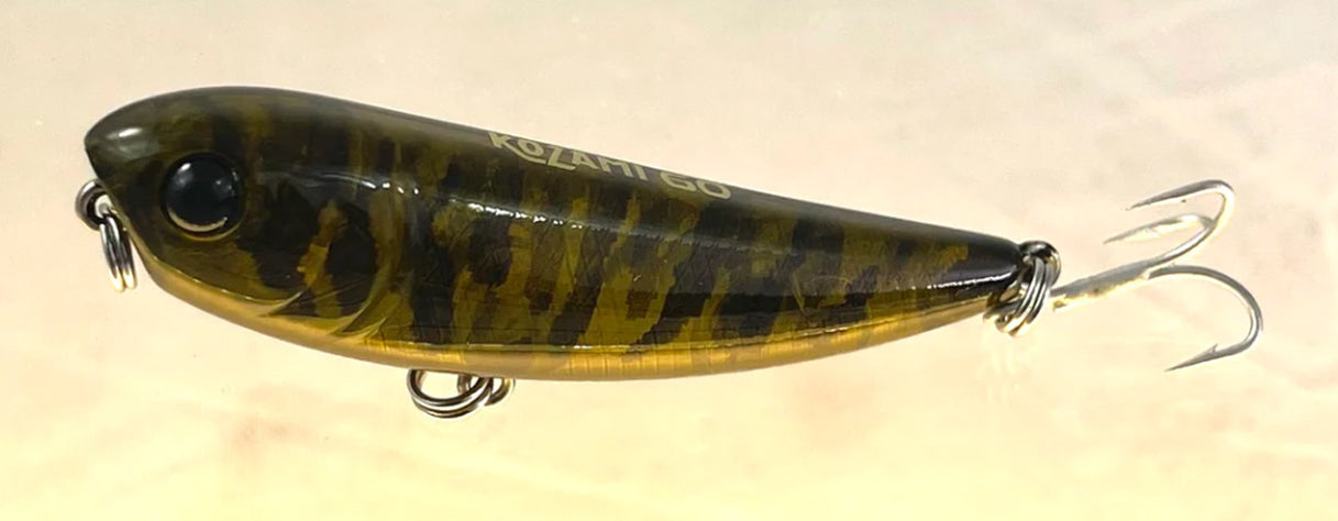 The Gladiator 60mm Kozami "walk the dog" lure is a must for any ones tackle box if you chase fish off the surface. Slightly bigger than the 50mm, this lure presents a bigger bait with more action. This lure is incredibly easy to get the action out of and you'll soon be nailing Bream, Bass, Whiting and whatever else feeds on surface prawns or baitfish. Custom made for Gladiator and armed with VMC hooks.