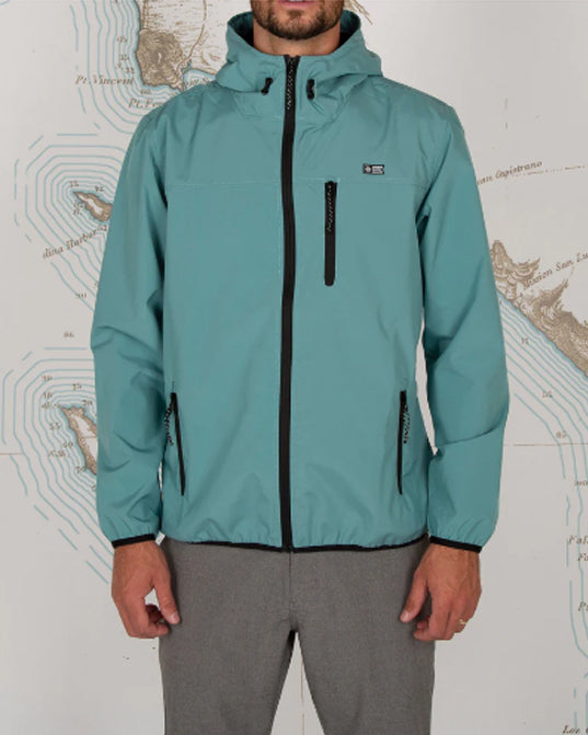 The Headwind Packable Jacket in Dark Aqua. A lightweight waterproof shell when you need it or packed into its own pocket and stowed away when you don't. With side and chest zippered pockets and a 3 panel adjustable hood. Made from 100% Polyester and 10K waterproof TPU coating.