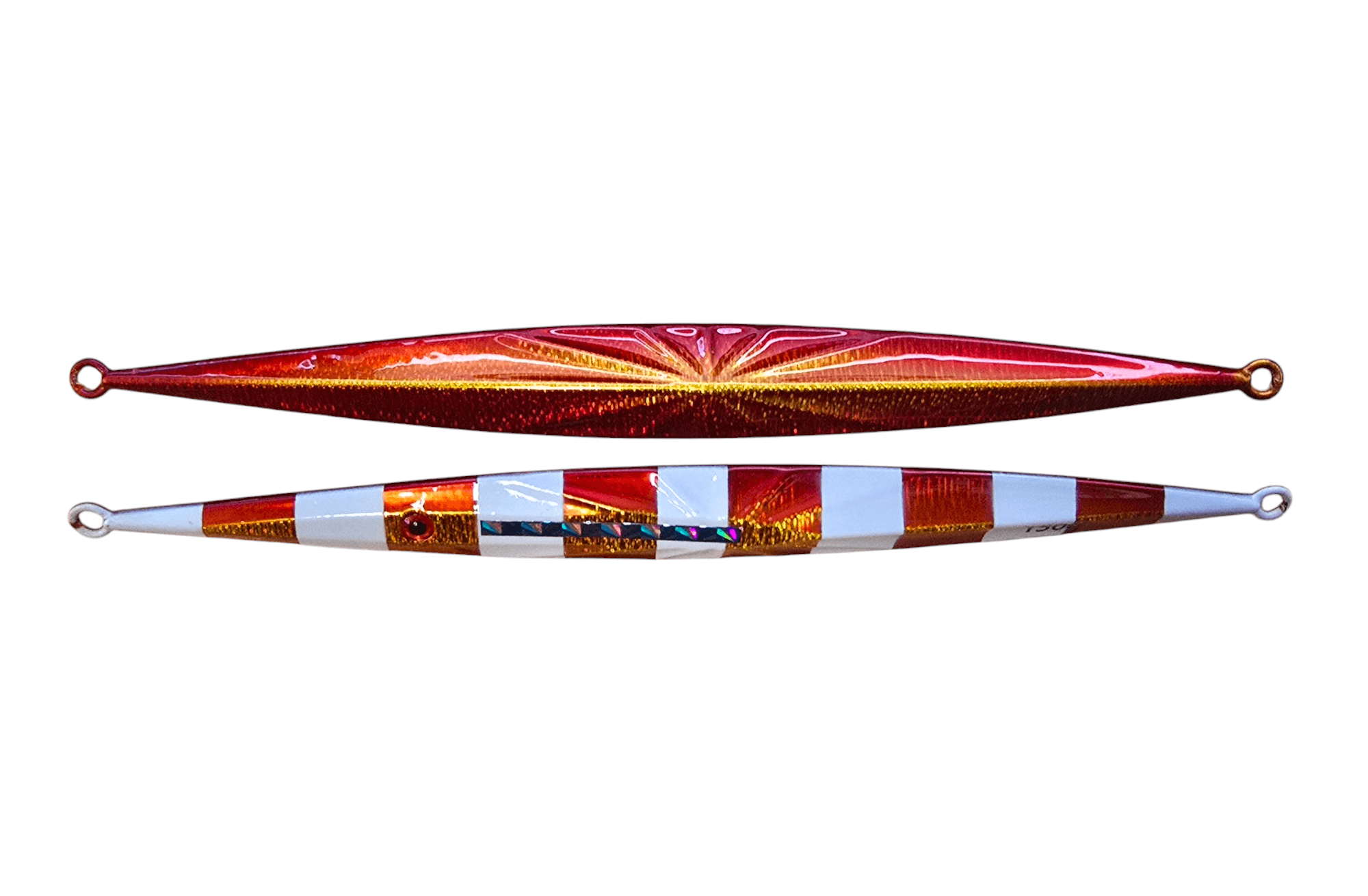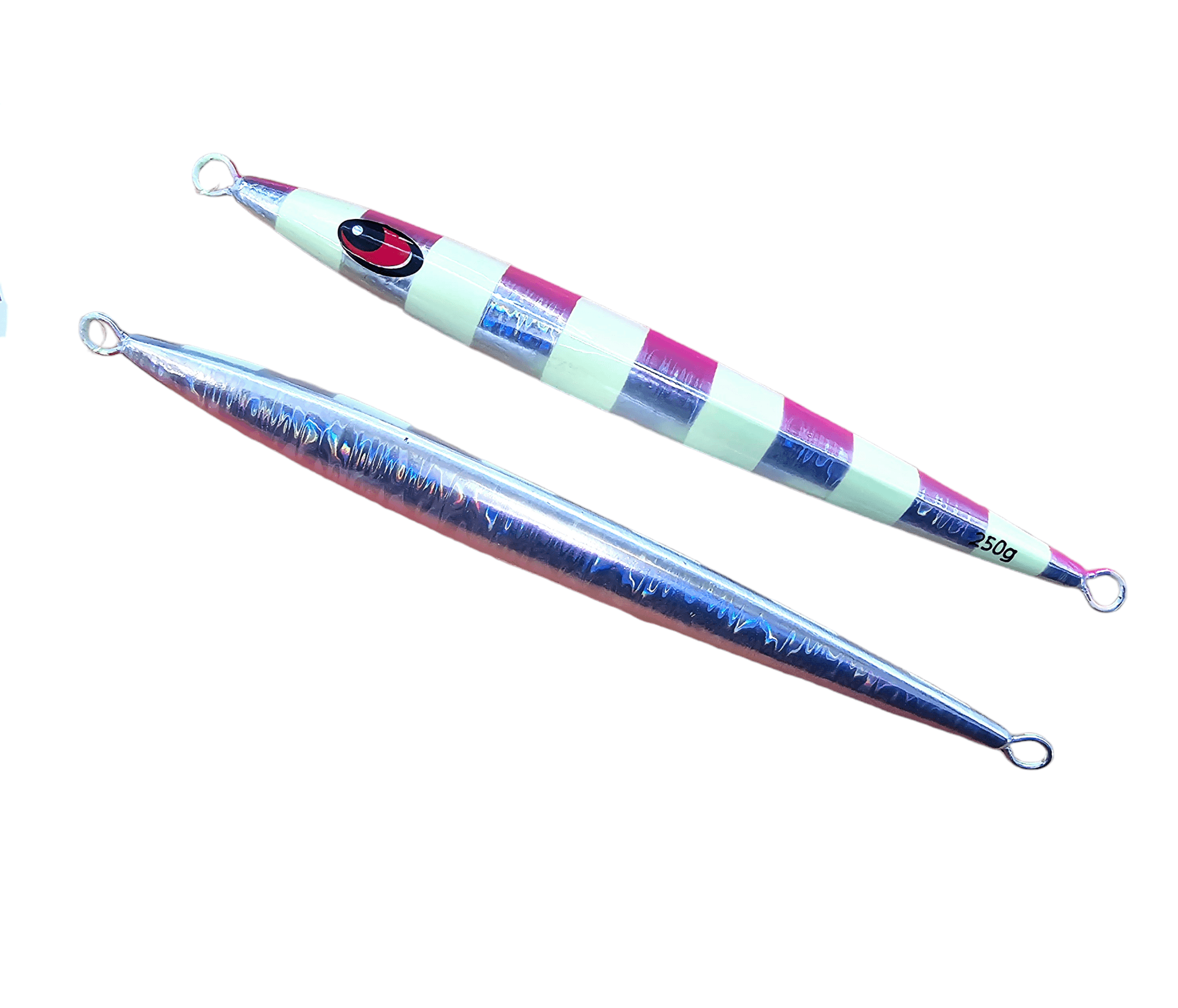 The RNDT High Pitch Knife Jigs are specifically crafted for fast-paced jigging. Its range of sizes allows for versatility, from shallow water fishing for grouper and snapper, to deep sea fishing for giant trevally, yellow tail kingfish, amber jacks, tuna, dogtooth tuna, and various other reef species.