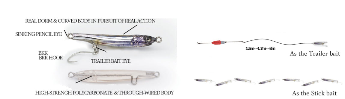 *If you use the main body as a trailer bait by rotating it, please use the encouraged leader thickness as a guide. If the leader is too thick, it may be difficult to rotate due to resistance.