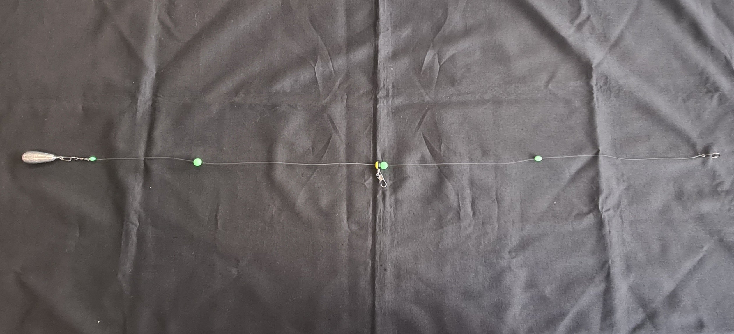 The Slide Rig made with quality 15lb line with a swivel in the centre of the trace long shank hook and 20g sinker, with a bead & bead stopper to allow you to adjust the depth of the hook to various fishing types and conditions.