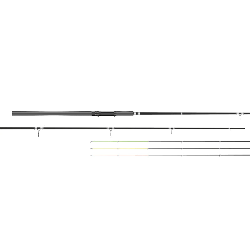 A feeder-style rod with 3 different tip sections included to suit various bait fishing applications. Light weight, incredibly sensitive for easy bite detection, and a full length butt section for accurate casting.