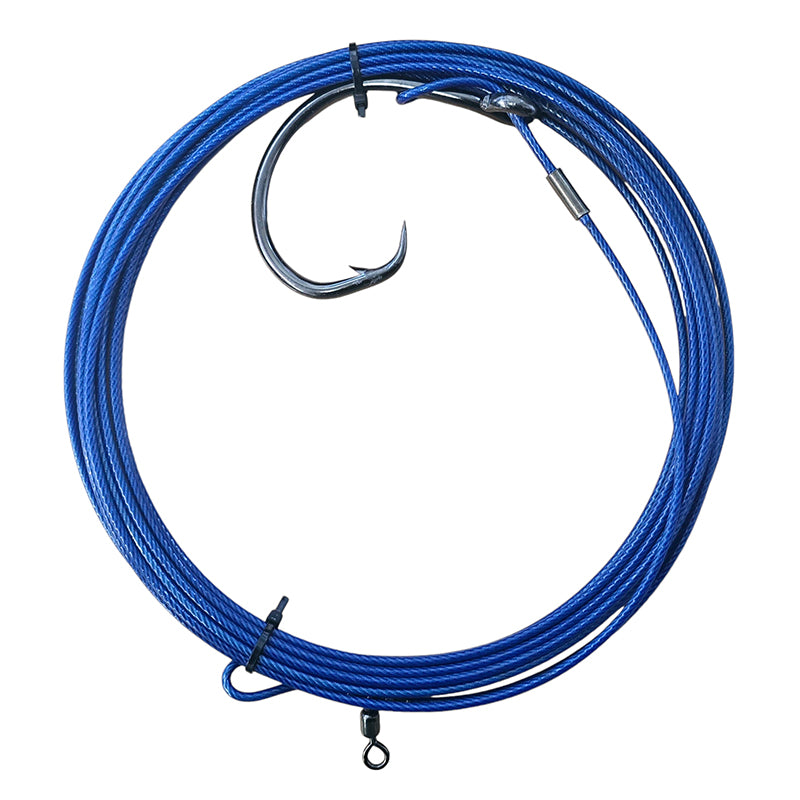 This Predator Tackle Circle Hook Shark Trace is designed for ultimate durability and reliability in shark fishing. Made with high-quality coated wire and heavy-duty circle hooks, this rig is sure to withstand the toughest challenges of the ocean. You can trust this trace to deliver the catch of a lifetime.