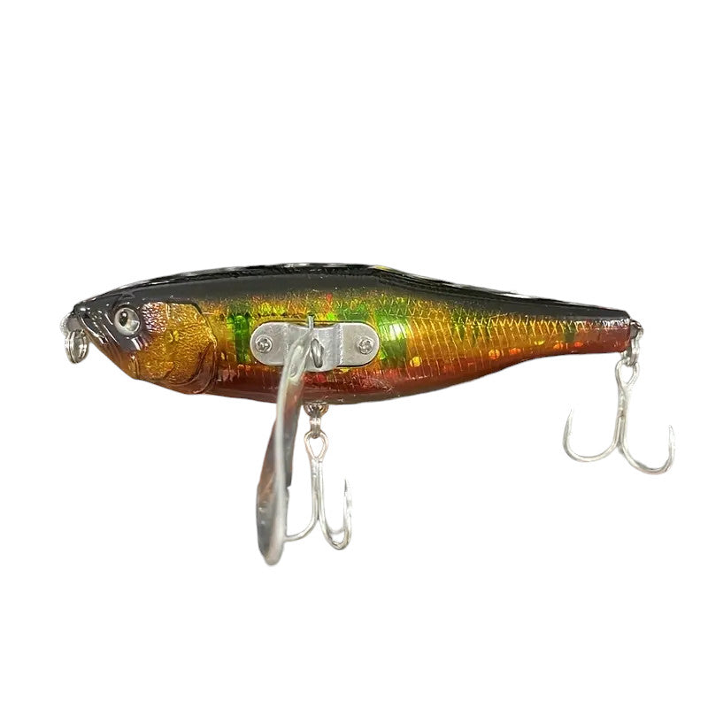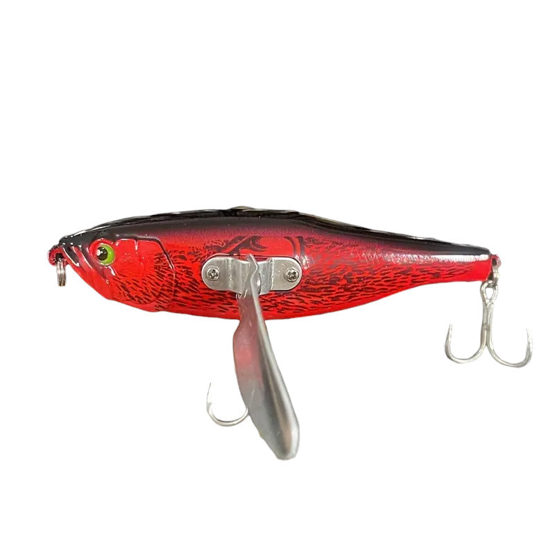 The Raider Surface Crawler Lure delivers explosive topwater action with its distinctive crawling retrieve. This premium lure features a wide, flat head design that creates maximum surface disturbance and realistic prey movement, triggering aggressive strikes from murray cod, bass, barramundi, and other predatory species.
