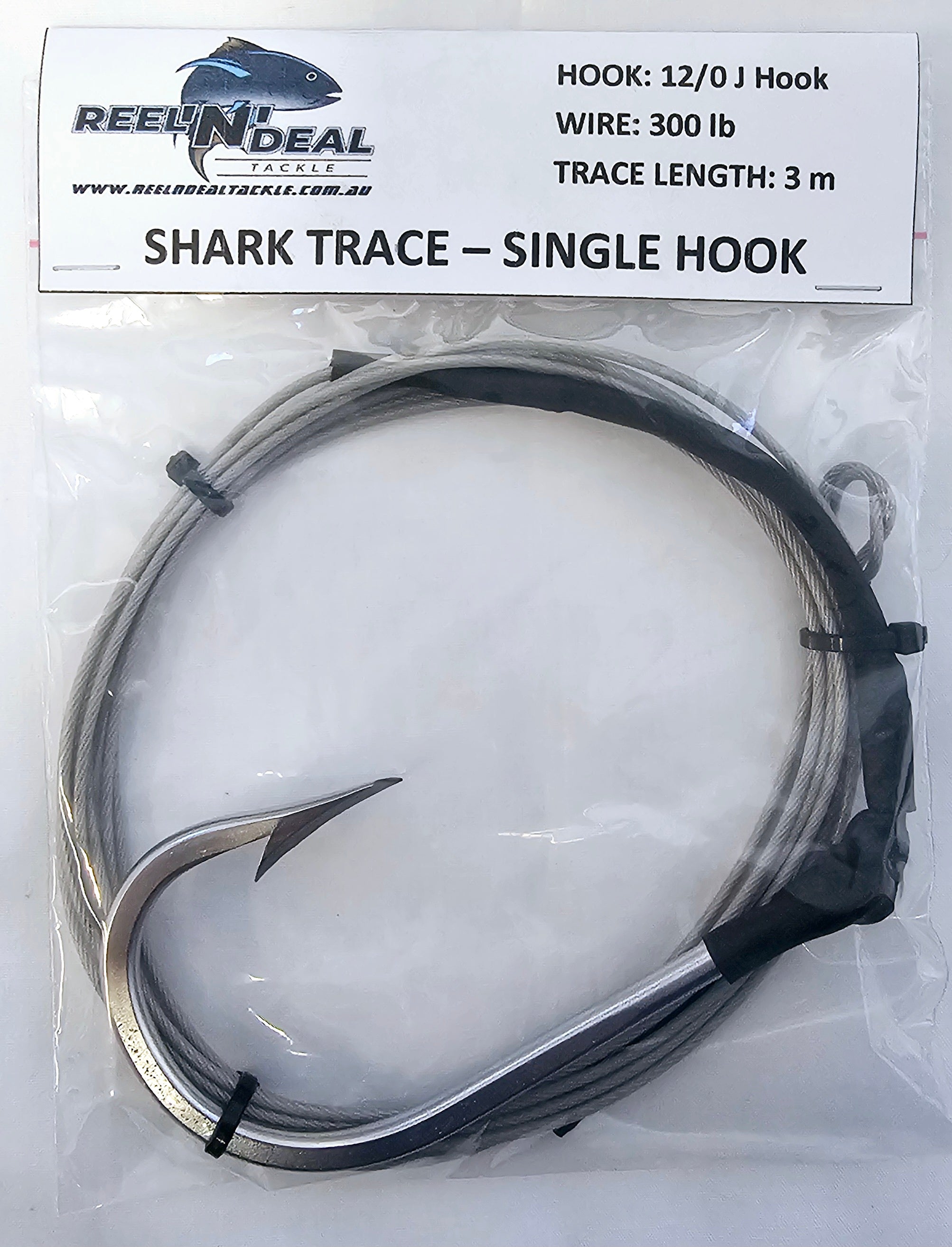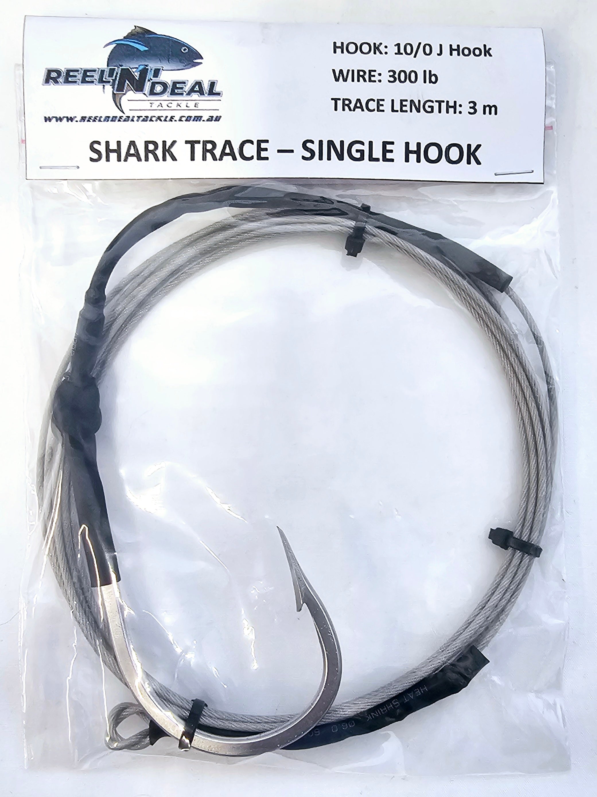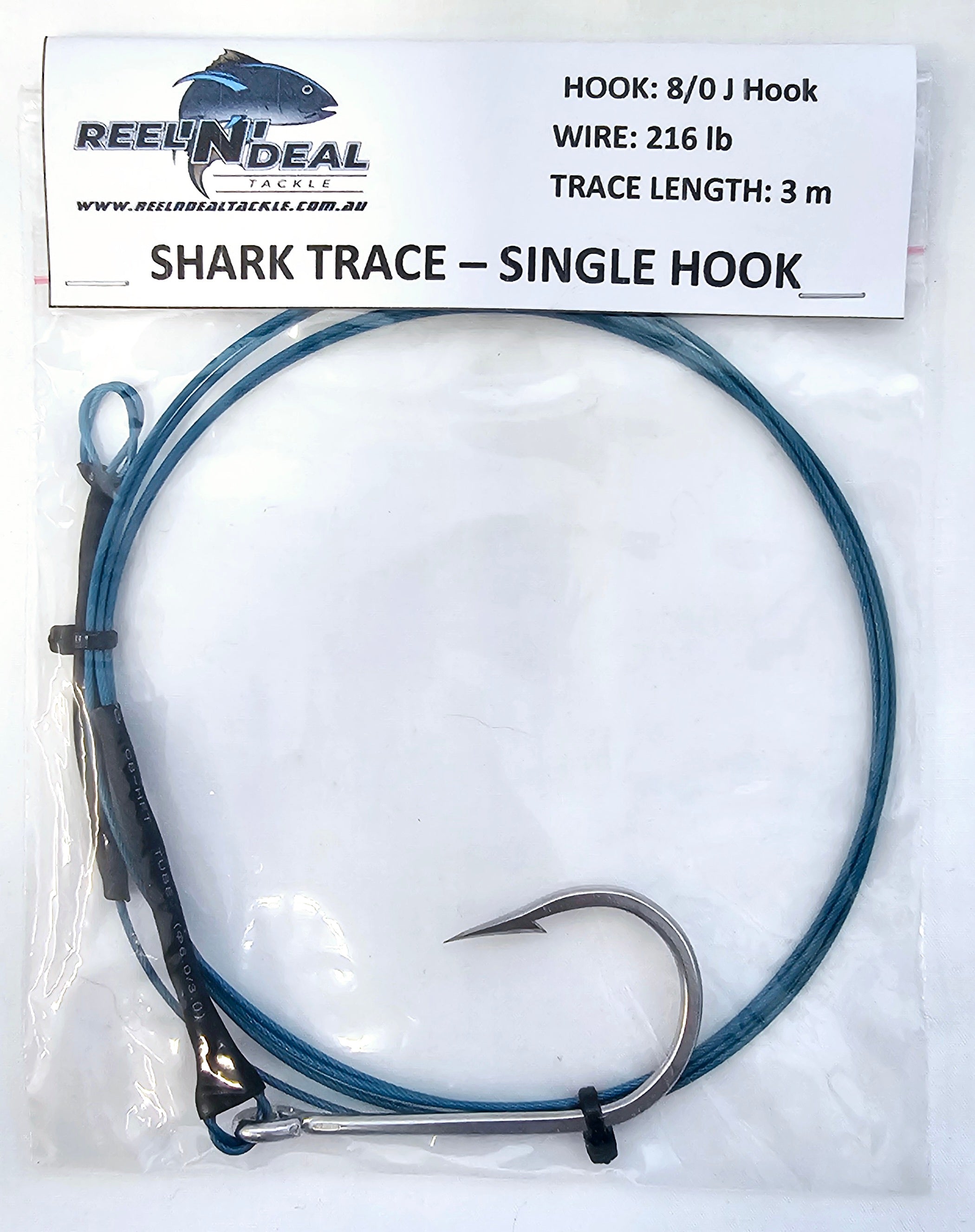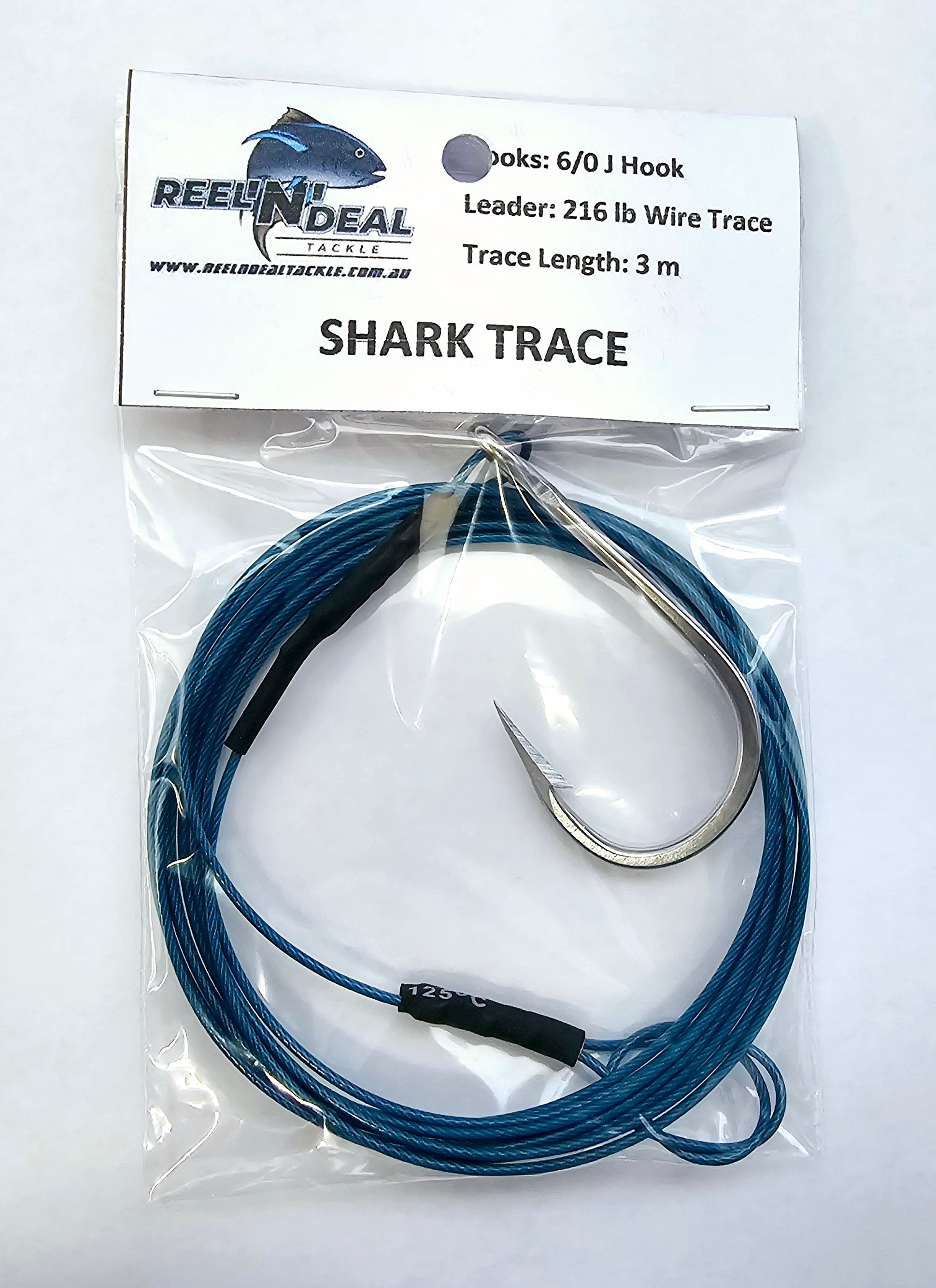 Reel N Deal Tackle pre-made shark traces are made in store by fisherman for fisherman. We use quality stainless steel rigging hooks with nylon coated steel wire trace to suit.