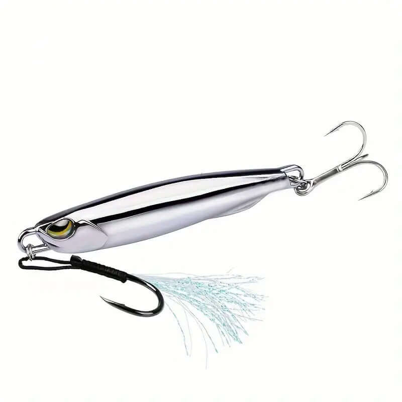 The Salmon Slayer Metal Lures look realistic with its 3D eyes and chrome zinc finish. Perfectly weighted for excellent castability and fitted with a quality single flasher feather assist hook and treble on the rear.