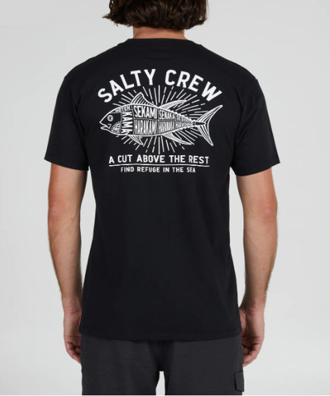 The Cut Above Premium S/S Tee in Black is a S/S Premium Tee featuring 30 Singles combed ring spun and Screen-printed front and back.