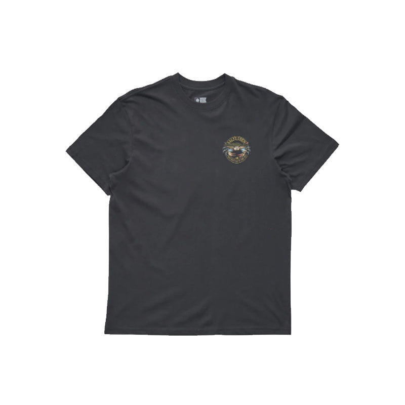 The Jimmy Premium SS Tee in Coal is made from 160gsm ring-spun cotton jersey for soft, durable comfort. It features digital prints on the front and back and a Salty Crew clamp label at the sleeve hem.