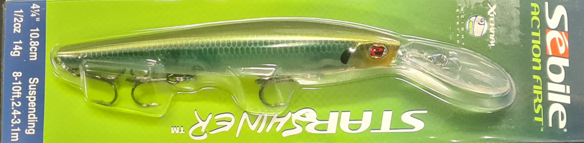 Low, external weight allows for a lower centre of gravity, higher buoyancy potential, and better tracking stability. Shapes designed to be shallow/medium suspending jerk baits. No High pitch rattle and awesome paint patterns make the Star Shiner's highly attractive to predator fish.