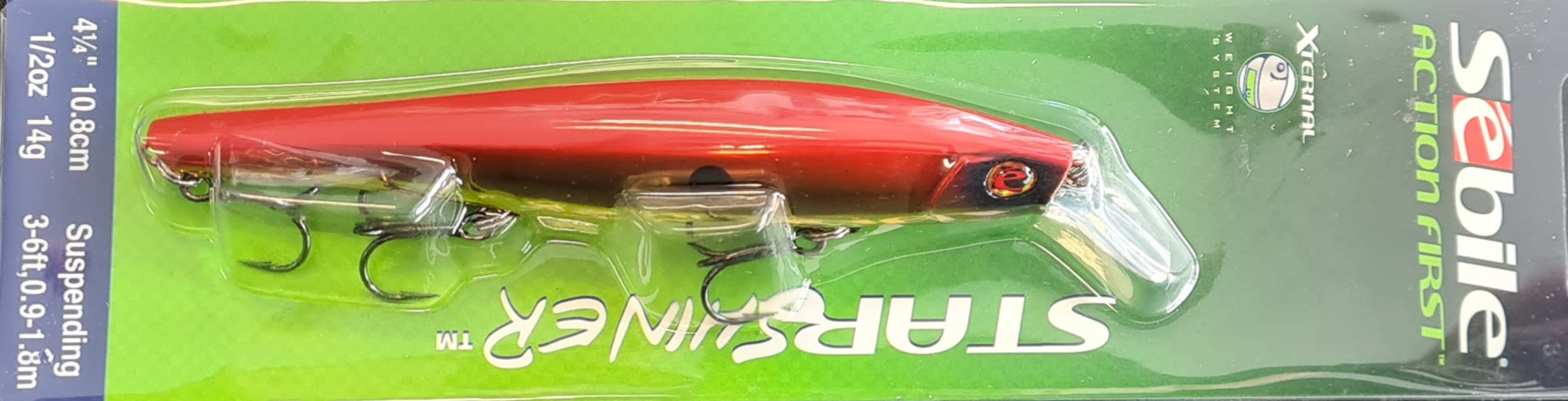 Low, external weight allows for a lower centre of gravity, higher buoyancy potential, and better tracking stability. Shapes designed to be shallow/medium suspending jerk baits. No High pitch rattle and awesome paint patterns make the Star Shiner's highly attractive to predator fish.
