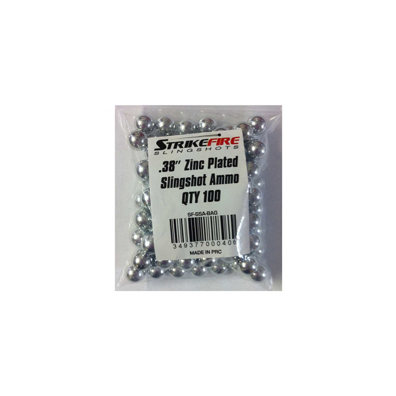 The Strikefire Scorpion Slingshot Ammo features a zinc-plated design and comes in a pack of 100 .38" rounds. Enhance your accuracy and power with this high-quality ammunition, making your slingshot experience even more satisfying.