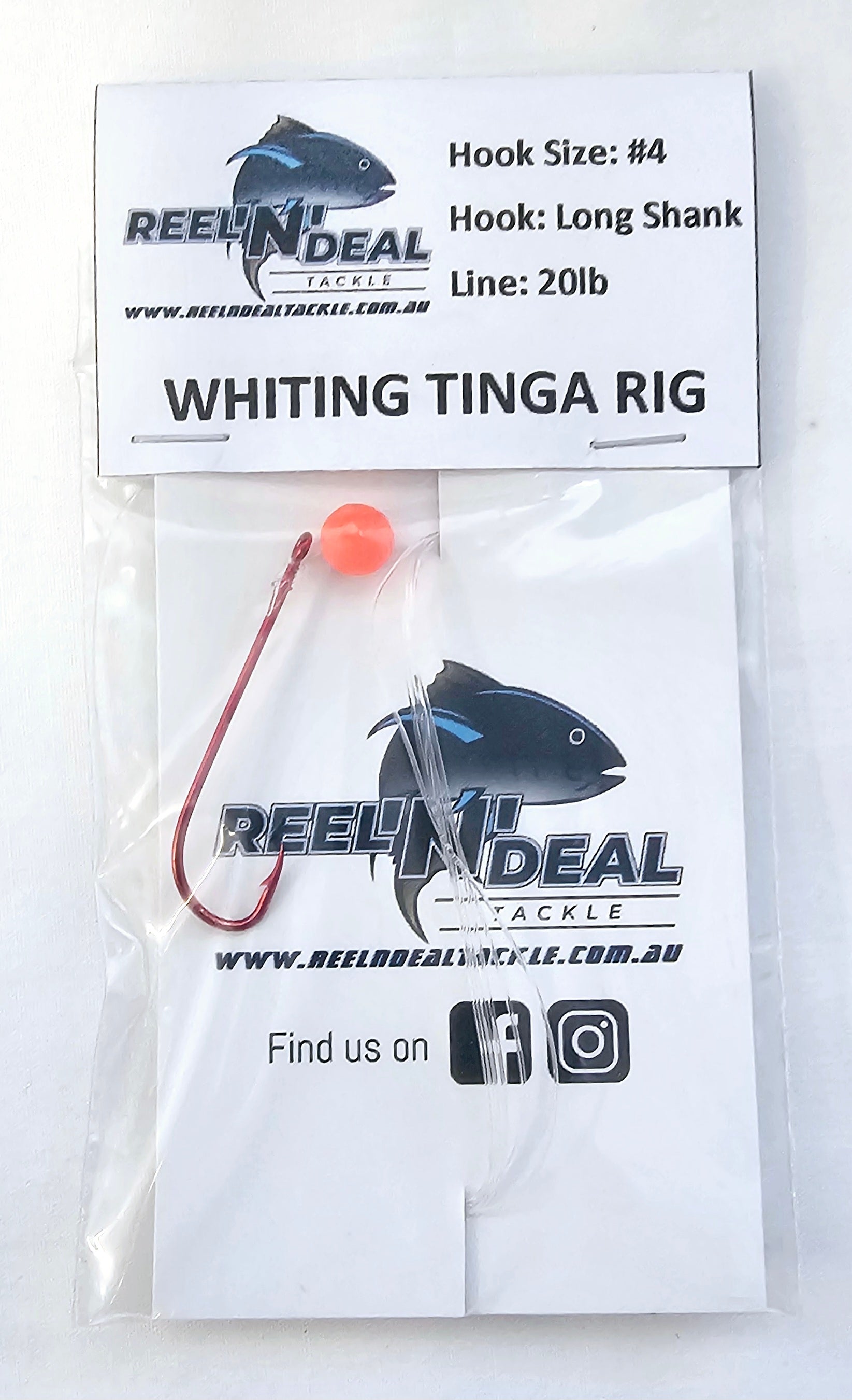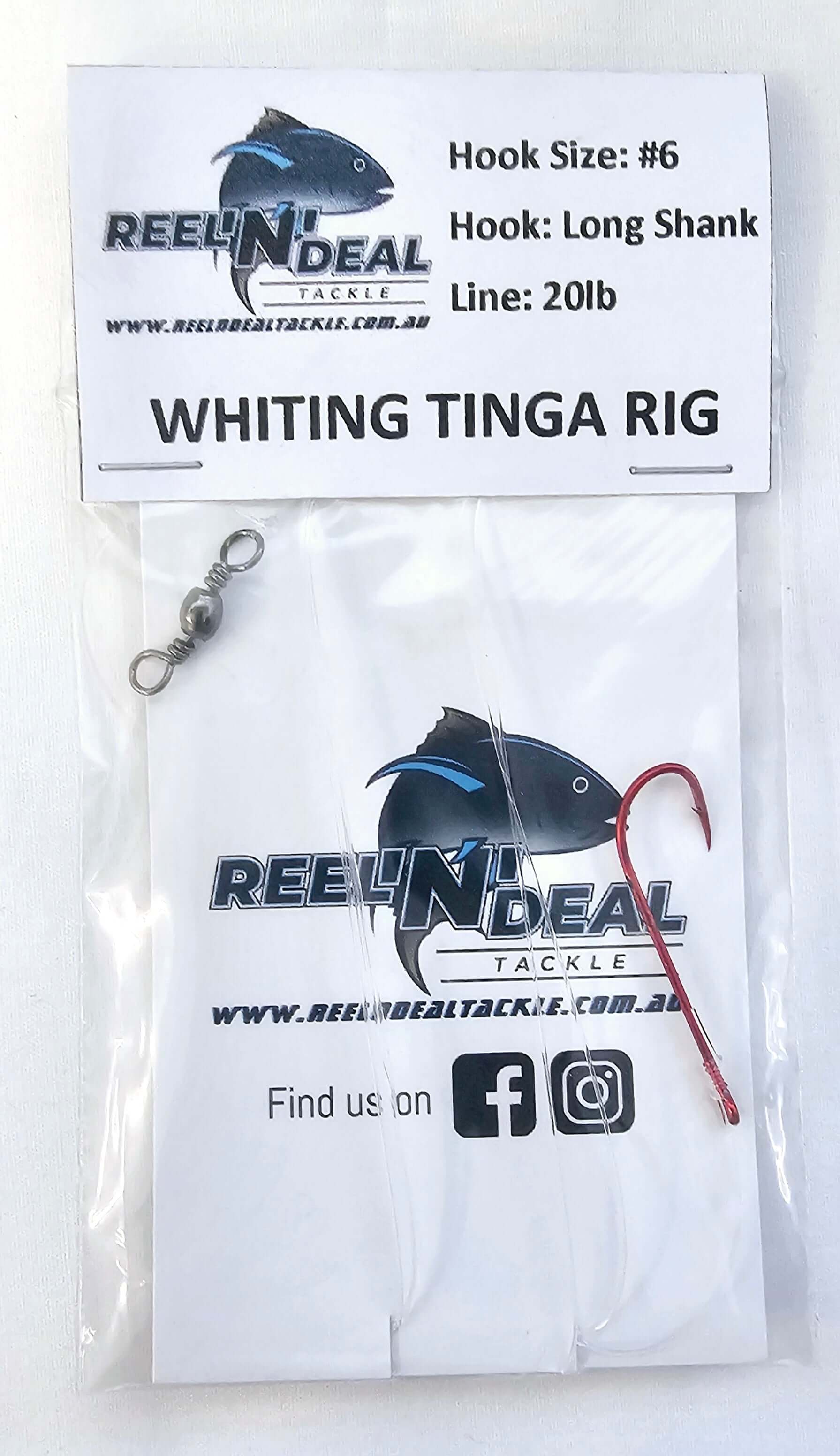 Our whiting tinga rigs are made in South Australia onsite at Reel N Deal Tackle. Tied with quality Hookem leader and hooks to give you piece of mind that these rigs will stand up when your hooked up.